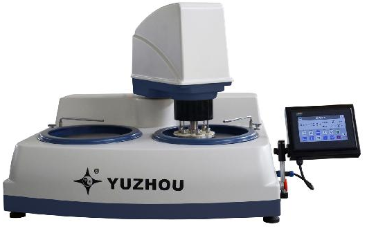 YMPZ-2-300 (250) metallographic sample grinding and polishing machine,It is a grinding and polishing equipment controlled by a single-chip microcomputer. The body is made of ABS material, which is novel and beautiful in appearance, corrosion-resistant and durable. The grinding disc can be adjusted steplessly, supporting forward and reverse rotation, and the pressure of the grinding head supports two modes of center pressure and single point pneumatic. A special running fit design is used between the grinding wheel sample disc and the grinding disc to effectively improve the quality of grinding and polishing. High-definition LCD touch screen control and display, easy to operate, clear and intuitive. The motor is a DC brushless motor, which requires no brush replacement. It has a long service life and very quiet operation. The powerful motor power brings an efficient grinding and polishing experience. Double disc design, grinding and polishing can be operated independently. The design of precision cast iron supporting chassis ensures precise slewing balance; the leak-proof design of the main shaft effectively protects the bearings. The grinding disc adopts a special magnetic design, which supports fast disc replacement. The surface of the chassis and pad is treated with Teflon, and there is no sticking residue of sandpaper.