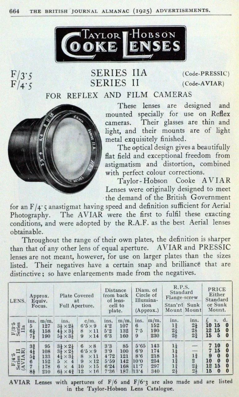 1930年代后期,泰勒霍普森公司成為全球光學鏡頭制造業的翹楚,為世界各國的電影制片廠提供了超過市場總量80%的電影攝影機鏡頭。