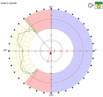 隨著工件精確找正,Talyrond 595H的高精度空氣軸承主軸帶動(dòng)刀頭旋轉(zhuǎn),測(cè)針通過切割掃描,傳感器每0.005度采集一個(gè)數(shù)據(jù)點(diǎn)。這種計(jì)量方法使用了回轉(zhuǎn)精度為0.015μm的精密測(cè)量軸,以實(shí)現(xiàn)刀頭和鉆石或紅寶石測(cè)針之間的單點(diǎn)接觸。