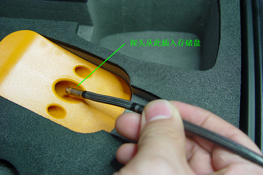 設備使用完畢后,應該將探頭插入機箱內部的探頭存儲盤中,相關操作包括:將探頭插入存儲孔,將探頭線纜正確盤放,完成這些之后,方可將設備妥善放入機箱內,這樣整個設備包括探頭都能夠得到機箱的良好保護,避免不必要的壓傷、彎折等,以免損傷設備。下面的圖示可以看得更清楚一些,不同內窺鏡產品的機箱會有一定差別,具體操作時要按照對應的操作手冊執行。