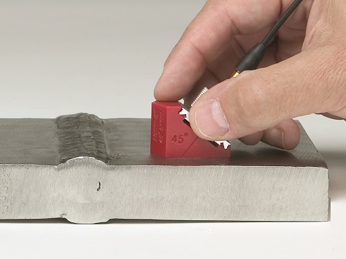 垂直聲束技術可以高效探測到分層缺陷,但是在檢測很多普通類型的焊縫時卻效果不佳,因為在這些焊縫中,不連續(xù)性的方向一般不會與工件表面平行。焊縫幾何形狀、缺陷方向,以及焊冠或焊道的存在這些因素綜合在一起,要求使用以一定角度生成的聲束,從焊縫的一側,對焊縫進行檢測。
