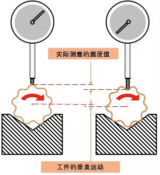 另一種經(jīng)常使用的判定圓度的方法是將被測工件放在一個 V 型塊中,并在與千分表或類似的指示器相接觸的情況下旋轉(zhuǎn)它。這實質(zhì)上是一種三點法,而不是上面所說的兩點法。如果零件確實是圓的,不規(guī)則度可以忽略不計,指示器的指針就不會移動。 形狀上的誤差會使千分表顯示讀數(shù),然而當(dāng)不規(guī)則的地方接觸到 V 型塊時,零件也會上下移動。此外,在測量軸類工件時,與 V 型塊相接觸的不只限于被測平面。這就意味著,零件沿其半徑方向的不規(guī)則特征將影響千分表的讀數(shù)。三點法的局限性在于結(jié)果可能會因 V 形角和不規(guī)則特征的間距而變化。 |