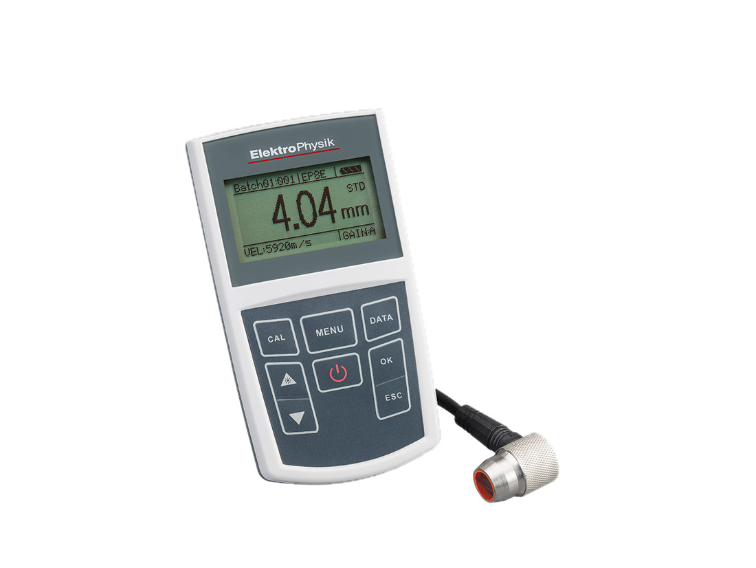 基于超聲波脈沖運行時間方法的堅固,精確的超聲波測厚儀。 六個超聲測試探頭,其頻率在2到10 MHz之間,采用不同的設計,可提供廣泛的應用范圍和0.65mm至500mm的厚度測量。 高溫超聲測試探頭可對加熱到350°C的材料進行測量。