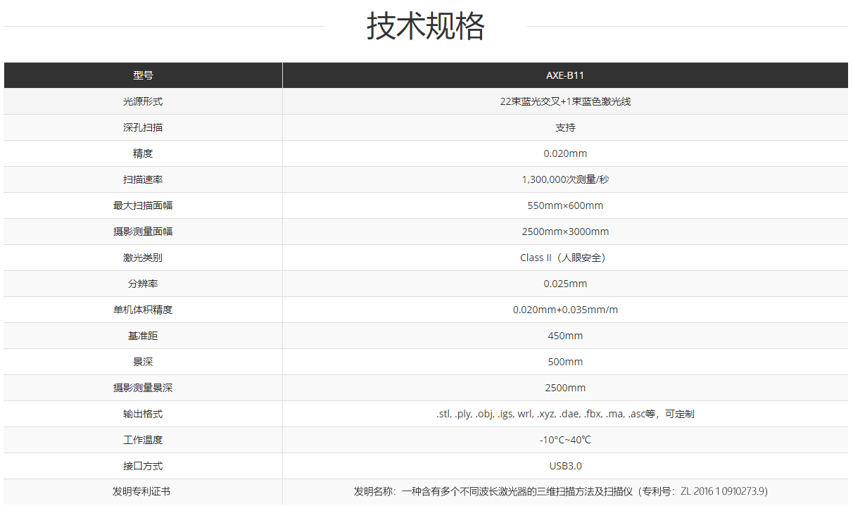 思看科技對AXE-B11全局式三維掃描儀進行了全面升級,擁有22束藍光交叉+1束藍色激光,支持高效掃描和深孔掃描兩種模式,1,300,000次測量/秒的超快掃描速度,專為中大型物體測量打造。