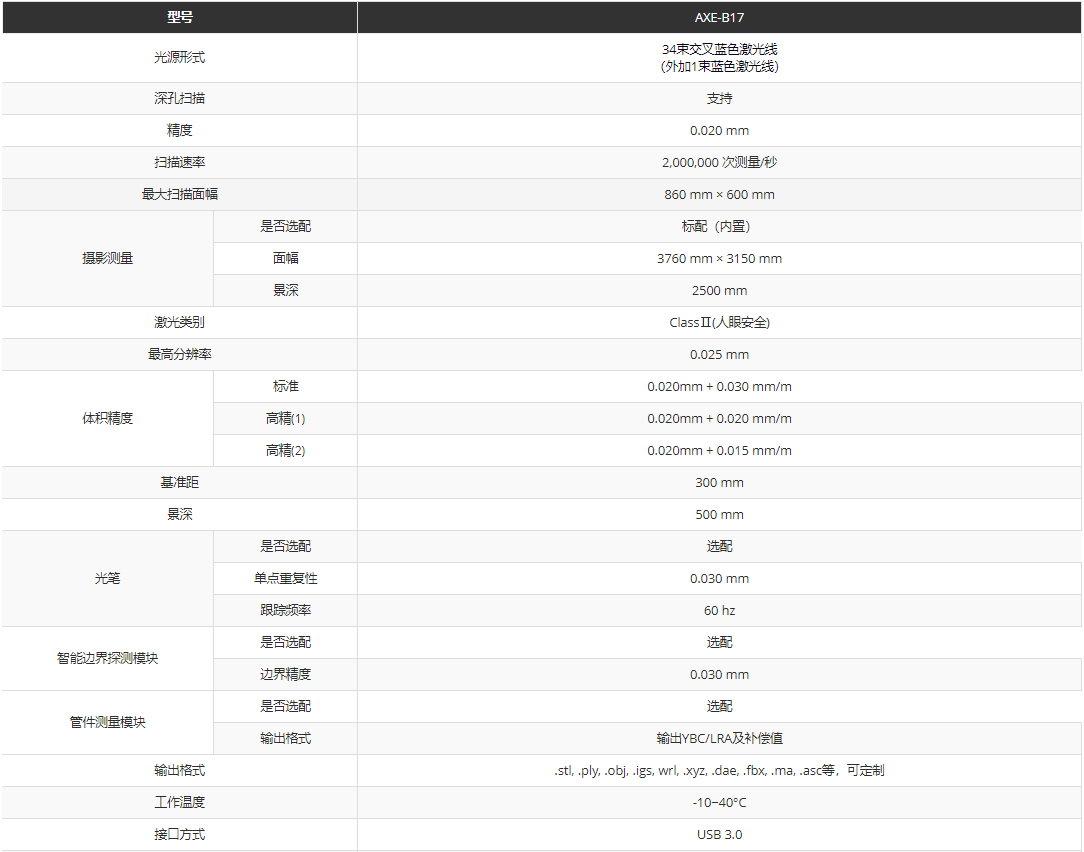 全局式三維掃描儀AXE-B17