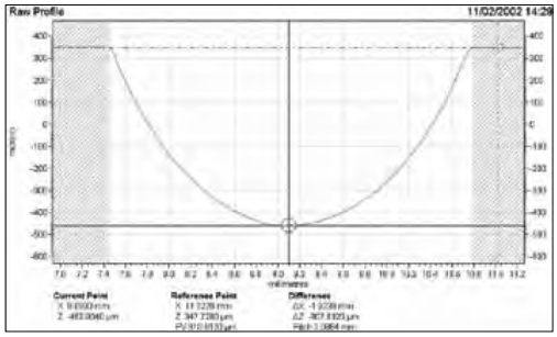 ● 以橫向(X 軸) 數據點間距為0.5μm 進行數據記錄