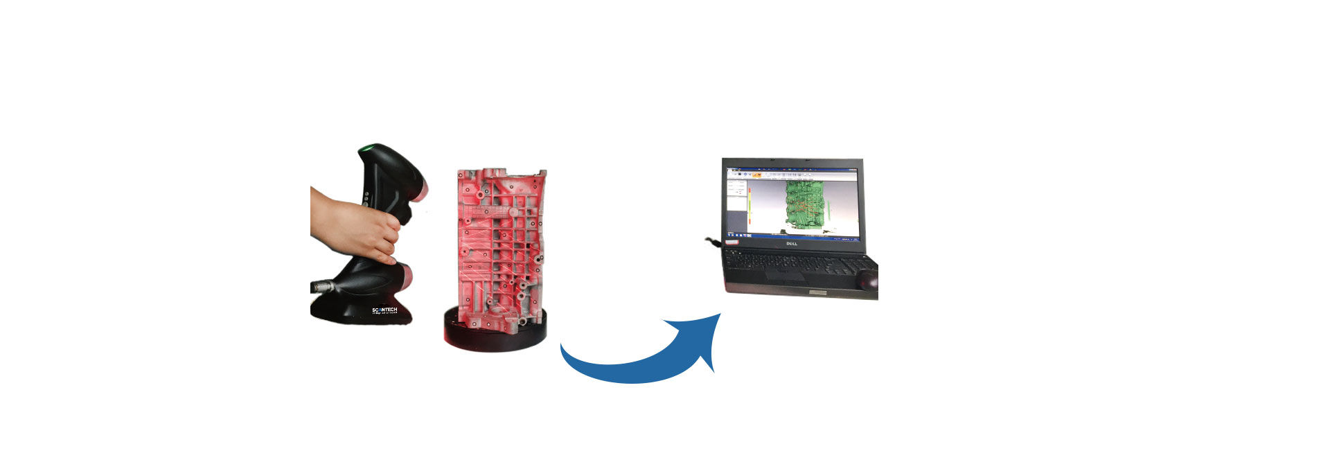 掃描數據實時呈現、實時拼接,可快速可獲得如深孔、死角等三維數據,在掃描造型復雜物體的優勢非常明顯