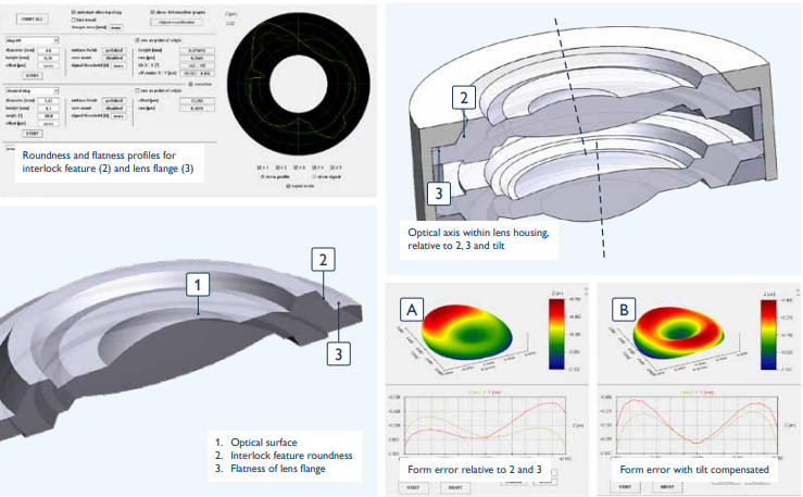 測量光學表面和幾何特征,例如互鎖表面的圓度,平面透鏡表面的平坦度以及光學表面相對于這些特征的位置。