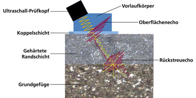 德國Fraunhofer超聲波背散射無損測試技術信號傳播簡示圖 上海量博無損檢測特大型套圈和軸承淬火硬化層厚度的探測系統
