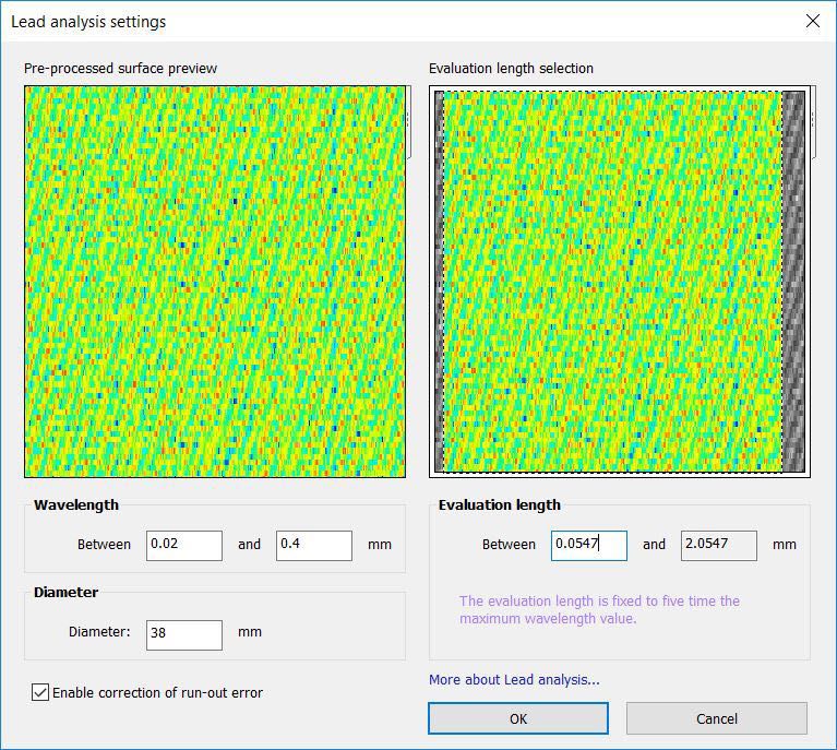 在案例中點擊導程分析Lead Analysis (Twist);波長設置0.02~0.4mm為默認;直徑按照客戶的工件圖紙輸入;評估長度會自動截取2mm的長度,可以任意拖動或在對話框中輸入。