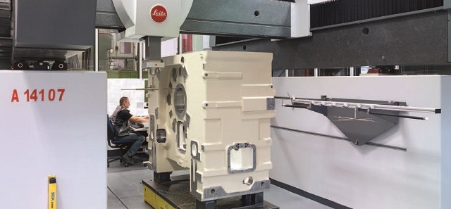 Leitz PMM-G可以讓客戶節省50-70%的測量時間。現在,可以非常簡單地利用起重機將部件直接放置在傳送系統上并推入測量車間。然后,Leitz PMM-G測量機傳感器對所有測量點進行測量,耗時大約在30-60分鐘,這主要取決于部件的復雜程度。在一些情況下,需要使用重達1千克的800毫米長的傳感器對殼體進行測量??紤]到它們的使用尺寸,這些傳感器測量的高精度令人印象深刻。