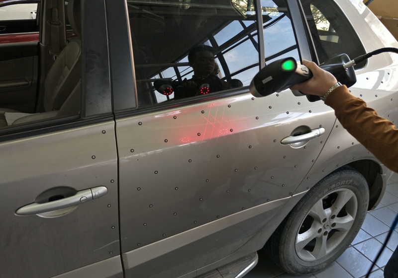 通過三維掃描儀可以快速檢測、修復汽車被撞后產生的凹陷