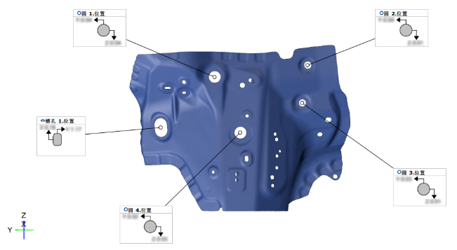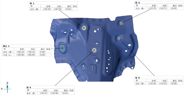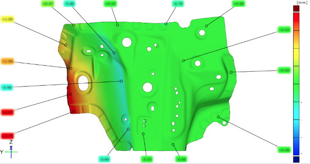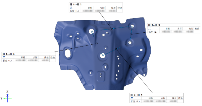 本次有效測量行程完全覆蓋現有全部部品,滿足全部尺寸測量,兼顧各種類型沖壓單品,滿足客戶對其782個沖壓單品進行型面偏差、孔徑、孔位置、孔間距、邊界、板減的分析。