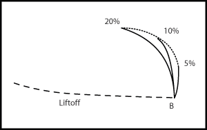 圖2中,我們(通過相位控制方式)轉動了一下視圖,將提離信號變為水平方向,并增加了儀器的增益,目的是只讓矩形框中的區域占滿儀器的屏幕。如果厚度曲線上的點C位置代表20%的厚度減縮,則當探頭移動到腐蝕區域時,圖中的點就會從點B位置移動到點C位置。